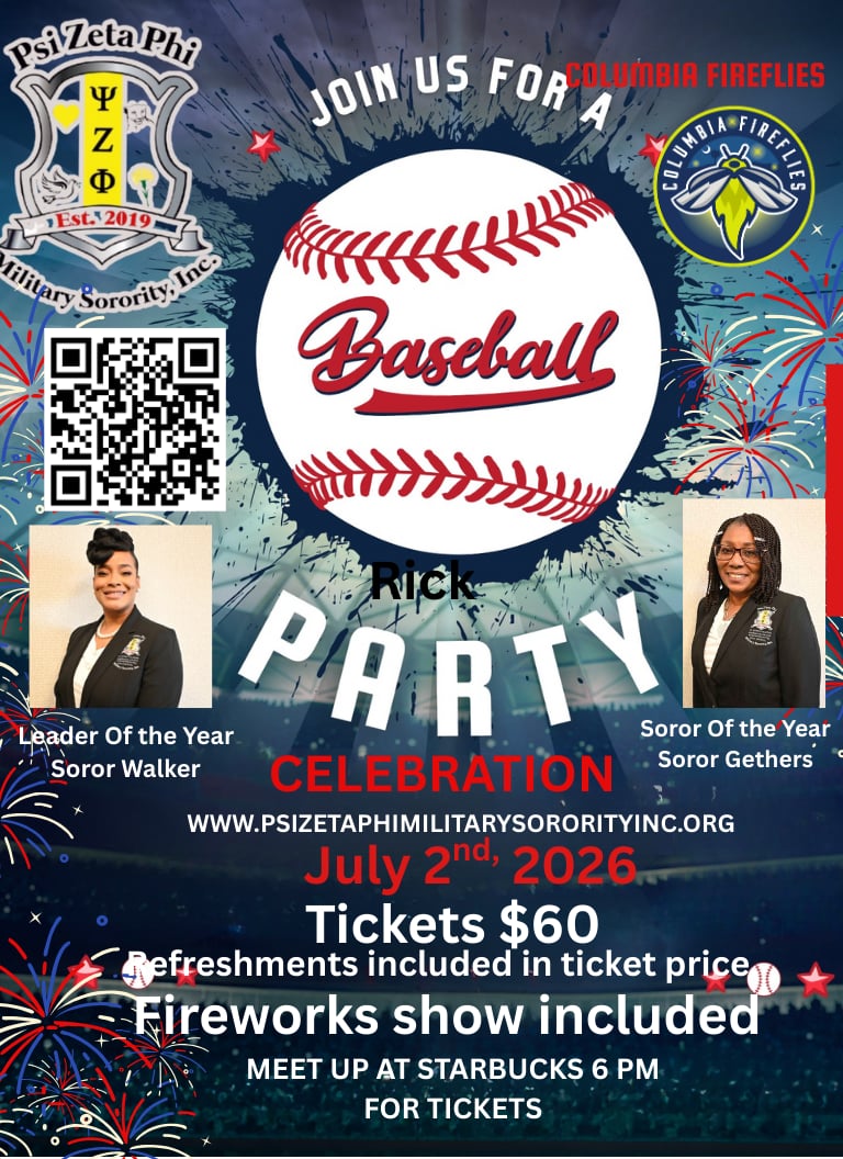 PSI ZETA PHI, MILITARY SORORITY WAS FOUNDED ON OCTOBER 1, 2019 IN COLUMBIA, SOUTH CAROLINA BY A female veteran. She wanted to use her strength to promote empowering women of all branches of the armed forces. In October of 2019, the founder of Psi Zeta Phi, Military Sorority, Inc performed their first community service by giving out hygiene products to homeless veterans in the Columbia, S.C. Psi Zeta Phi Military Sorority was incorporated in 2019.
